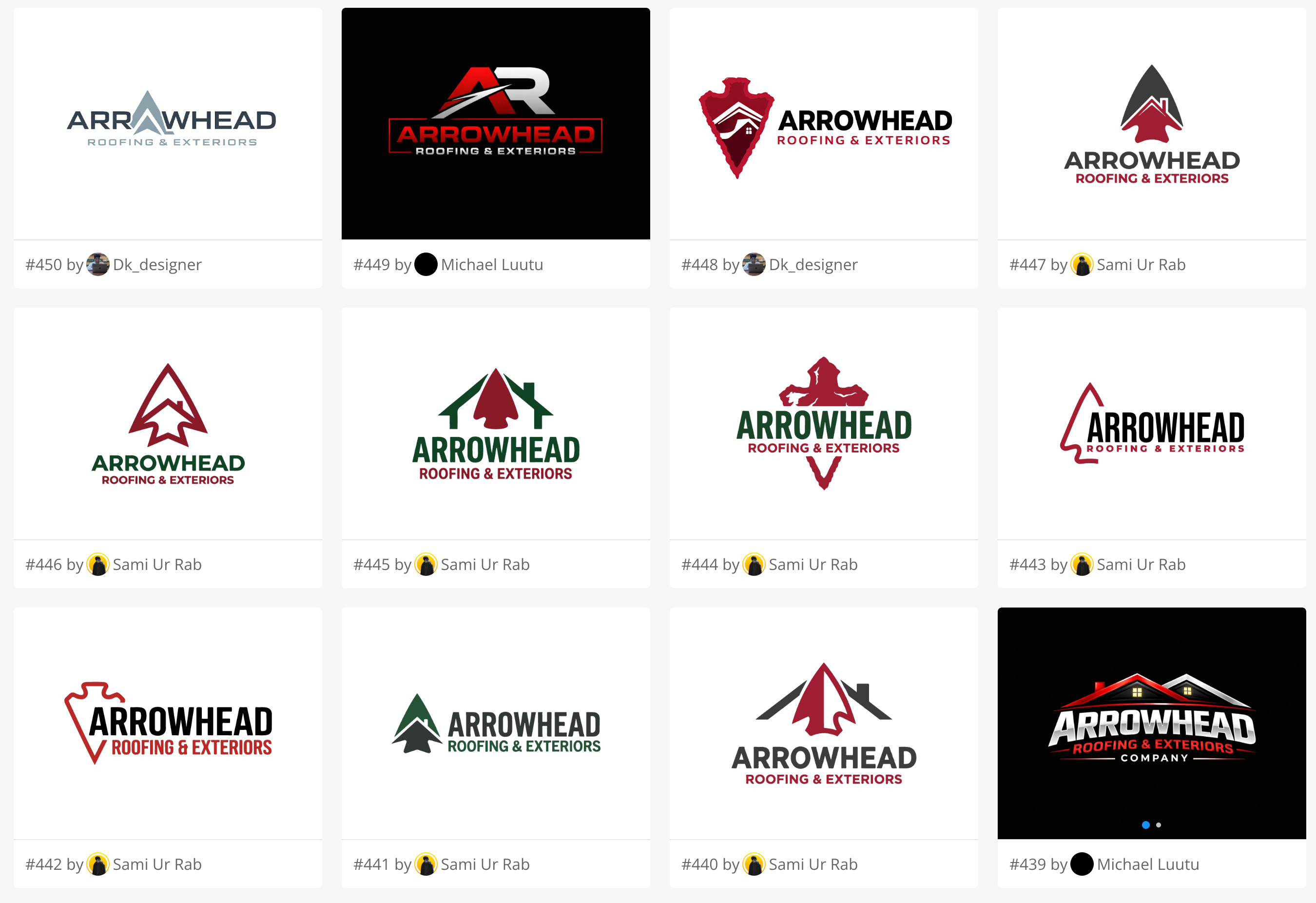 When you launch a project on 48hourslogo, you aren't just hiring one designer; you are tapping into a global network of creative talent. For the Arrowhead Roofing project, the client received an incredible 420 submissions from 77 different designers.